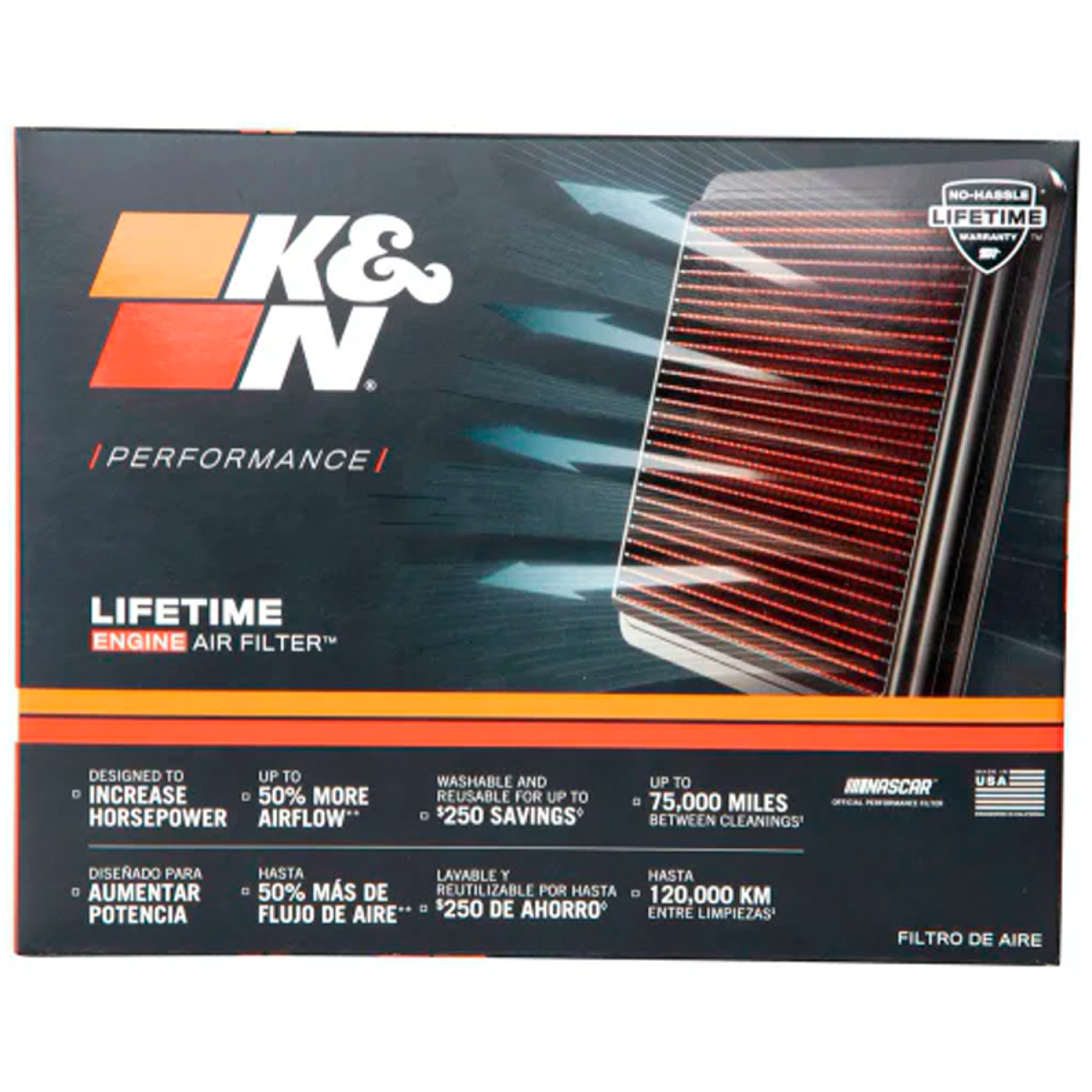 Cada camada de algodão de alto fluxo é projetada para permitir até 50% mais fluxo de ar do que os filtros de papel tradicionais - e maior fluxo de ar pode resultar em maior potência e torque. Os filtros de ar K&N são testados em uma bancada de fluxo SuperFlow para garantir maior fluxo de ar sobre um filtro original.